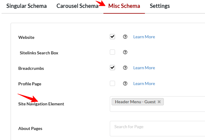 - The Schema Package plugin will automatically add the correct SiteNavigationElement schema to homepage.