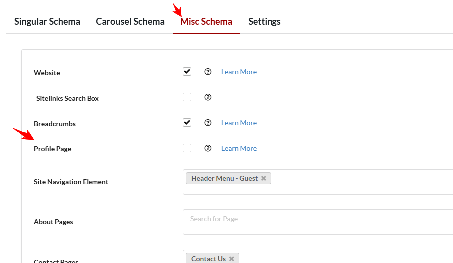 Schema Package → Misc Schema - Look for the option labeled “ProfilePage”.