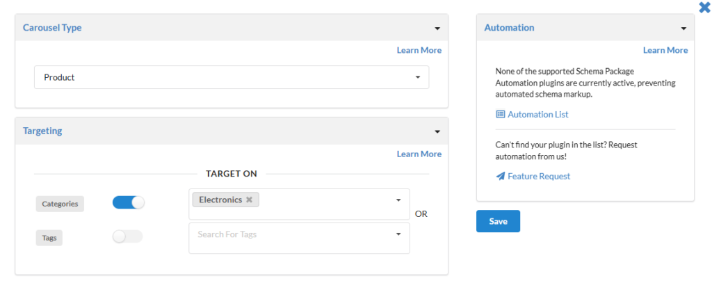 With Schema Package, you can configure Product Carousel Schema visually—no coding required.