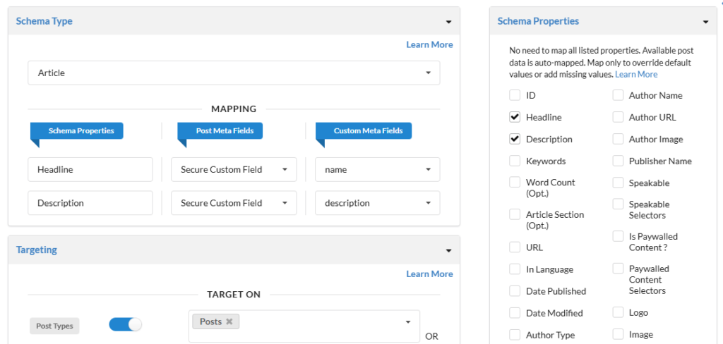 - Verify the schema is applied to the same post type